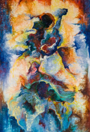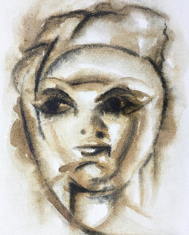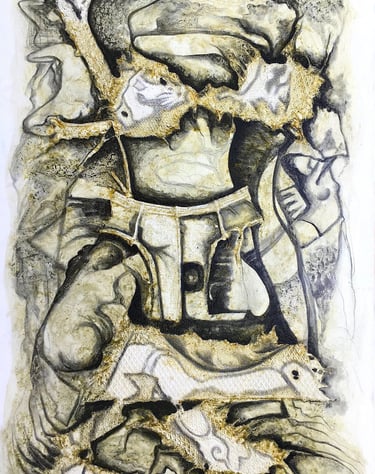 I combine traditional and unconventional materials—fabric, charcoal, resin, coffee—to explore recovery and justice through transforming matter into visual energy and light as resilience.