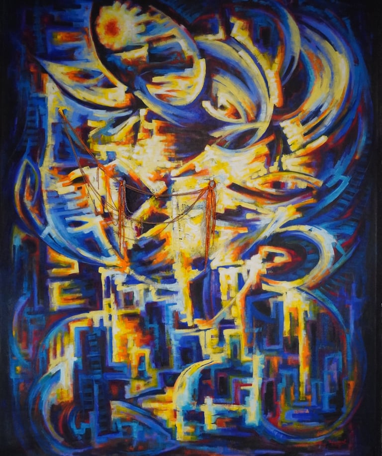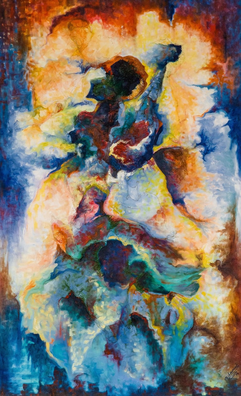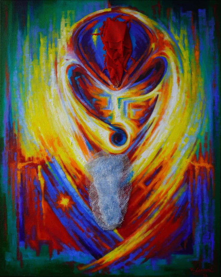 I combine traditional and unconventional materials—fabric, charcoal, resin, coffee—to explore recovery and justice through transforming matter into visual energy and light as resilience.