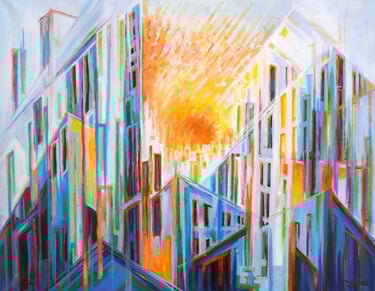 The city has eyes. This series captures the pulse of city life, blending abstract forms with cultural symbols to spark conversation.